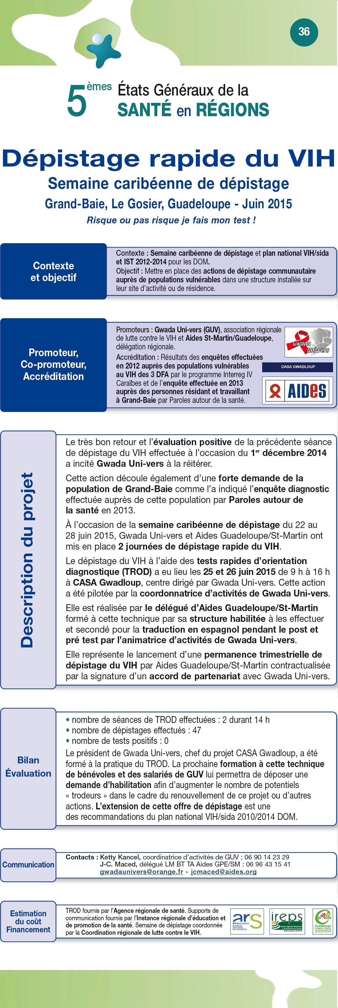 L’association Gwada univers a présenté les posters suivants lors des 5èmes états généraux de la santé en Région qui ont eu lieu en septembre 2015.